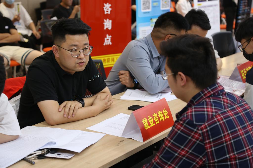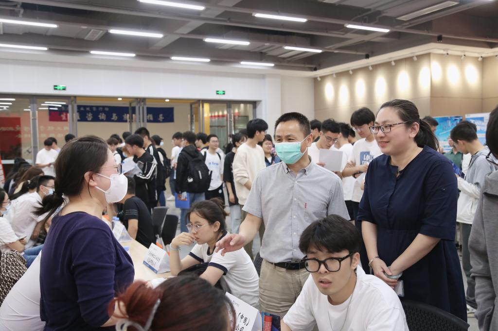 党委书记耿向阳,党委副书记、副院长孔丽丹来到现场与用人单位和参会学生亲切交流。辅导员王志顺、李灿、屈跃宽、沈滔参加了现场交流并为学生提供就业和征兵咨询。