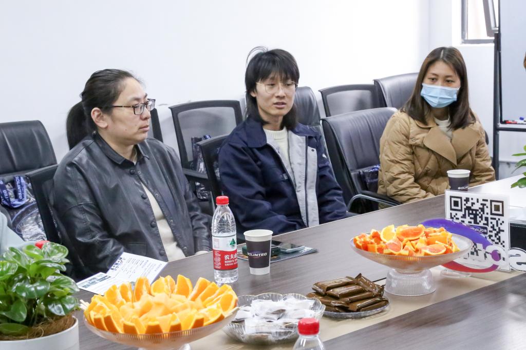 一行表示热烈欢迎,市场经理周英杰从公司发展历程切入,围绕业务体系布局、创新研发方向以及未来发展规划三个方面,详细介绍了天青及新能源细分市场现状,还分享了公司在人才引进、培养和管理等方面的经验和做法。孔丽丹结合学院历史沿革,就本研学生规模、专业结构设置、人才培养举措等方面做重点介绍。她强调,学院注重推动专业人才培养内驱动力和行业联合培养外牵引力的多元协同,提升人才培养成效,学院各专业均与企业需求高度匹配,表达了推进校企双方产学研用、人才培养深度融合的愿望。