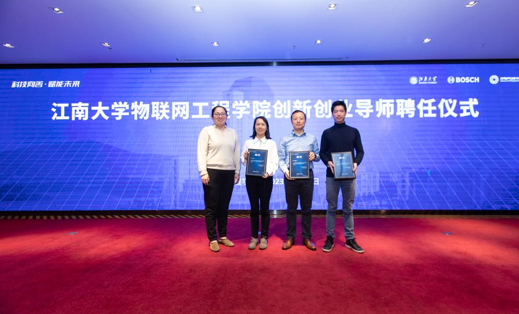 第六届“博动未来”创新挑战赛总决赛暨颁奖典礼在长广溪宾馆太湖厅圆满落幕。博世动力总成有限公司新业务发展部总监冯琦峰、创新平台经理金鑫、博世工业4.0高级经理崔清、博世工程体系专家HUG Juergen,玩偶姐姐
