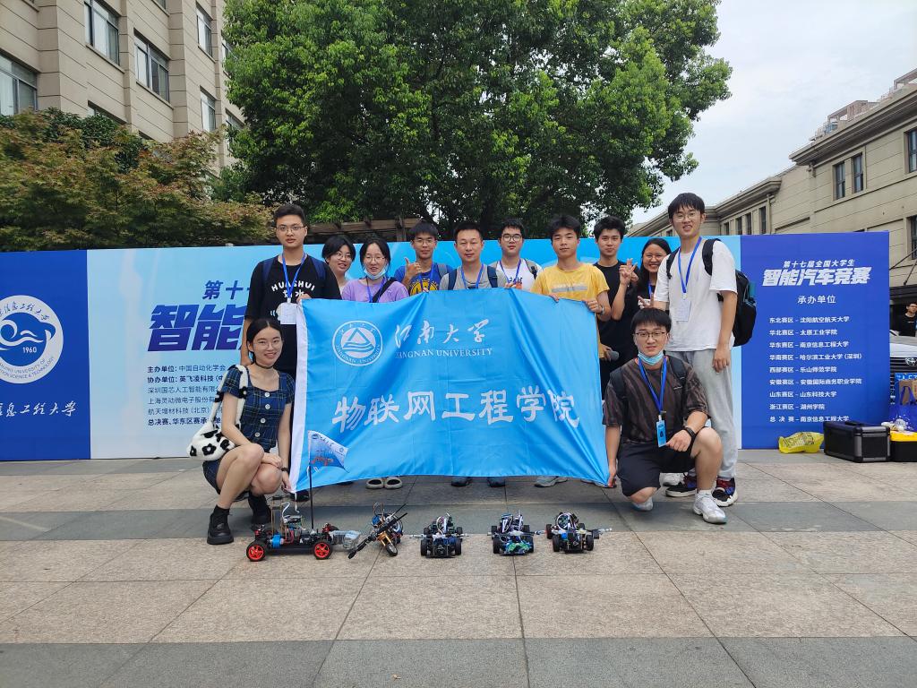 8月18日,参赛队员前往南京信息工程大学参加华东赛区的竞赛,经过激烈角逐,由谢富源、朱世怡、吕珂、李驿青、黄韧频组成的“全面小康”队和李世骏、朱文青、陆熠千组成的“江南Z-23”队在多车编队、极速越野的项目中表现优异,分别以赛区第4、第6的名次斩获一等奖,成功晋级全国总决赛。由张海涛、陈基浩、谭艳玲组成的队伍参加平衡单车赛项,小车在竞赛中出现意外,遗憾以赛区二等奖的成绩结束本届大赛。在随后的全国总决赛中,两支参赛队伍认真总结赛区比赛经验,不断完善车辆性能,在总决赛中位列全国第13名、第14名,均以1名之差与一等奖失之交臂,斩获2项全国二等奖。