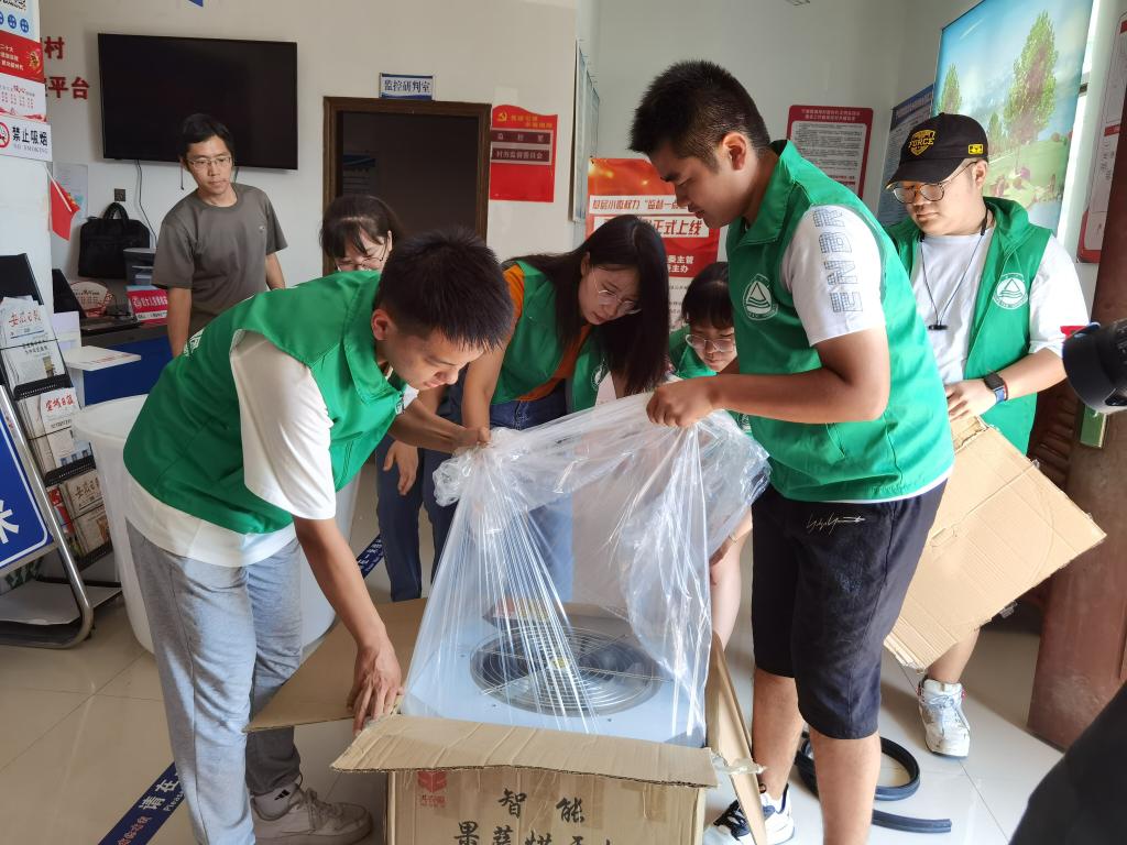 实践团对烘干山核桃的设备进行组装