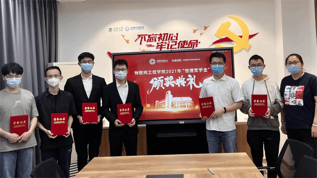 过志强、王正堂分别宣读了2021年度“信捷奖学金”获奖研究生、本科生名单。2021年度共有56名物联学子获得“信捷奖学金”,其中研究生6名、本科生50名。孔丽丹为获奖学生代表颁发了获奖证书。获奖学生代表、控制工程2019级硕士研究生魏钰轩在发言中代表全体获奖同学向无锡信捷电气股份有限公司表达了感谢。他回顾了三年的研究生学习、科研生活,表示将以自强奋进的姿态迎接新挑战,学习信捷电气承担社会责任的精神,用所学知识回馈社会,用行动报效祖国。