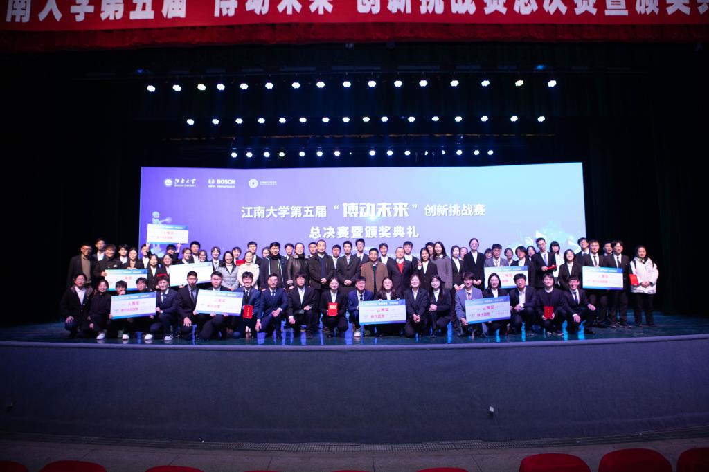 第五届“博动未来”创新挑战赛总决赛暨颁奖典礼在文浩馆观众厅圆满落幕。博世动力总成有限公司创新平台经理金鑫、软件开发高级经理费杰、企业传播部经理费翔,玩偶姐姐