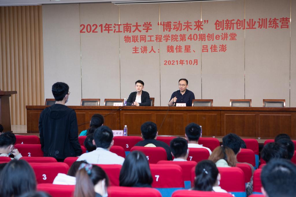 创业校友无锡源代码科技有限公司创始人吕佳澎、南京星蝠科技有限公司创始人魏佳星担任主讲。玩偶姐姐