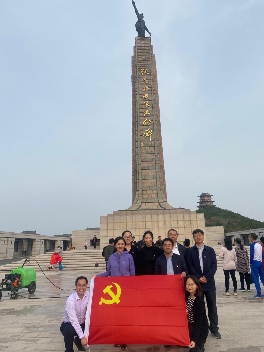 党委中心组在铁道游击队纪念碑前合影