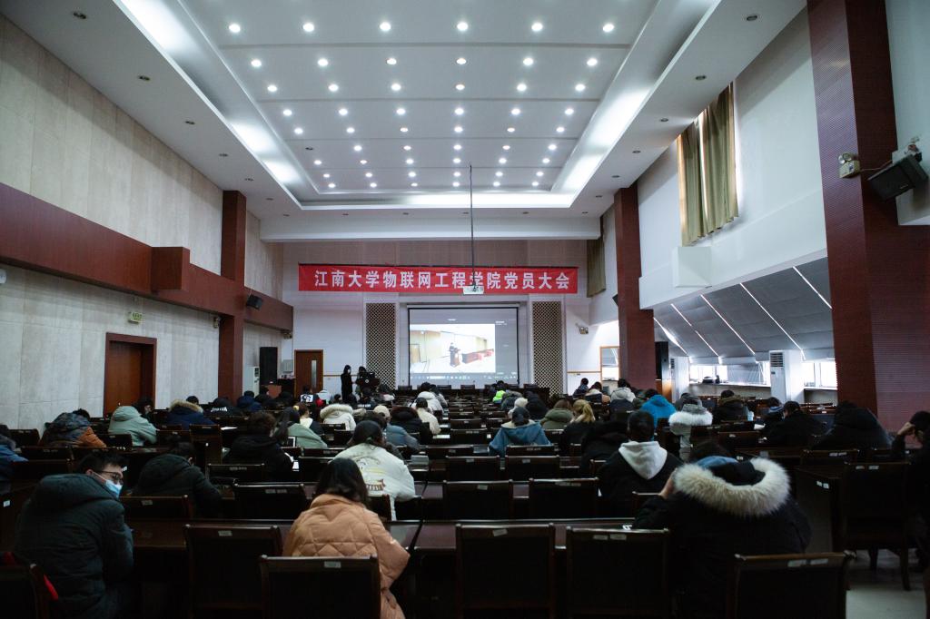 D328分会场。会议由院党委副书记孔丽丹主持,全体师生党员参加了会议。