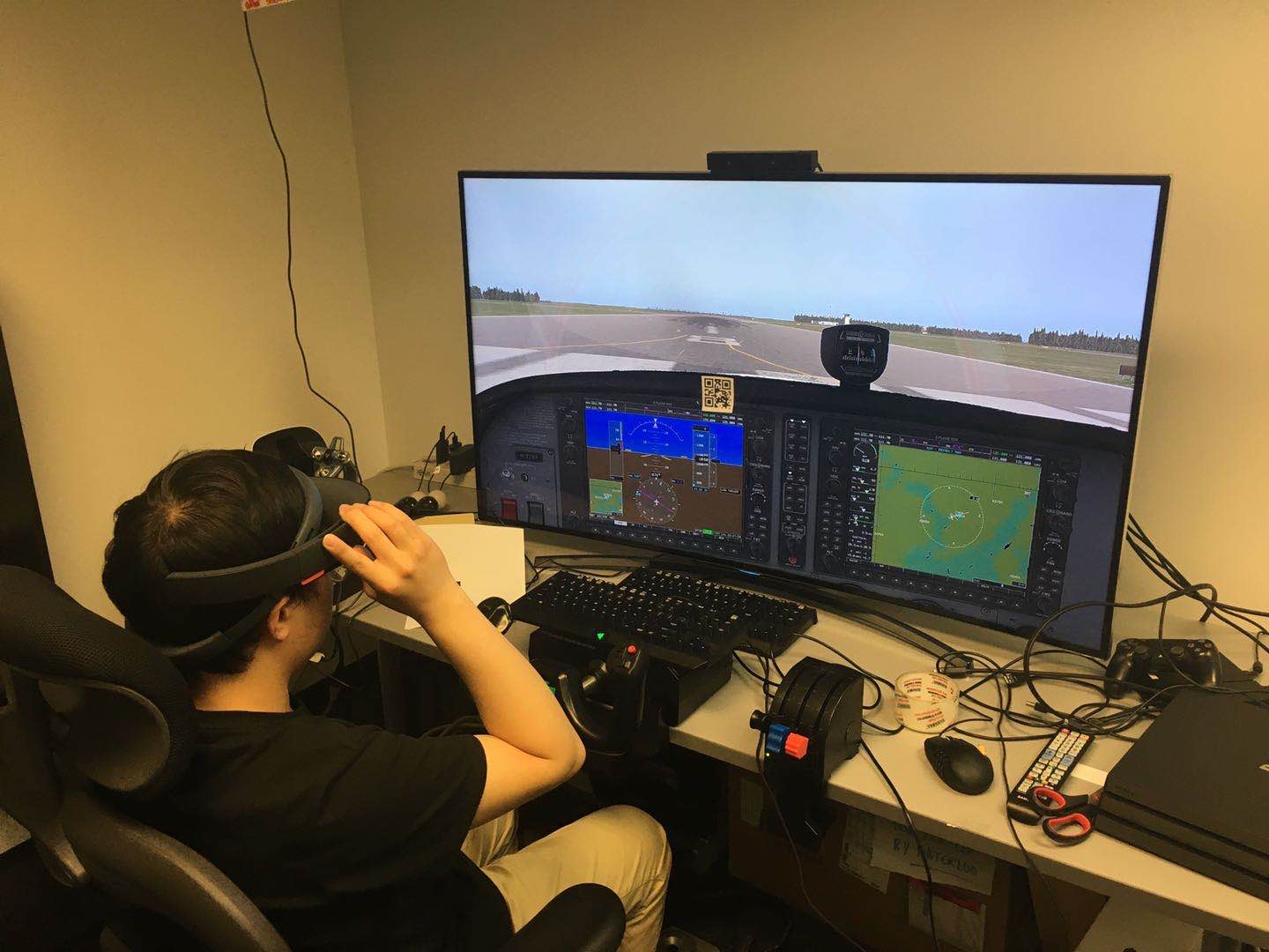 无心插柳柳成荫,王康不曾想到,这个在不知不觉间倍速发展起来的“外挂”,竟让滑铁卢大学的教授如此感兴趣,他激动地彻夜难眠。视频面试通过后不久,王康赢得了6个月短期交流的机会,立即启程飞往加拿大,开启新的项目研究。来不及领略异国风光,甚至来不及欣喜若狂,王康一落地便扎根在了实验室。国外导师交给王康的任务是利用AR技术构建飞行员辅助操作系统。虽然对AR开发有一定的经验,但是这个课题对王康来说依然是个难题。提起飞行员辅助操作,他的头脑中一片盲点,完全没有概念。又一次从零开始,王康丝毫不觉得气馁,这种不多见的新奇体验完全激发了他的钻研热情。王康一方面跟随导师一次又一次地去飞行模型驾驶实验室实地参观,一方面着手阅读大量文献资料,深入了解国内外在研究领域发展的情况,终于由一无所知到对课题有一定了解。简单说来,王康所在项目组的课题是开发一款AR应用,帮助菜鸟飞行员模拟试飞环境进行飞行训练。这件事情说起来容易,做起来难度系数却不低。他们需要利用AR技术将虚拟元素或提示增加在现实环境中,使得新手飞行员采用的飞机仪表盘上会出现必要的训练提示。他们的目标是创建一个沉浸式的环境,同时又允许用户与真实世界交互,整个系统就是一个用AR技术打造的创建虚拟元素与现实的混合体。此外,为了实现飞行员自主控制操作进程,应用的开发还需借助AR设备HoloLens可进行语音交互的优势,实现用户以语音命令控制操作系统。