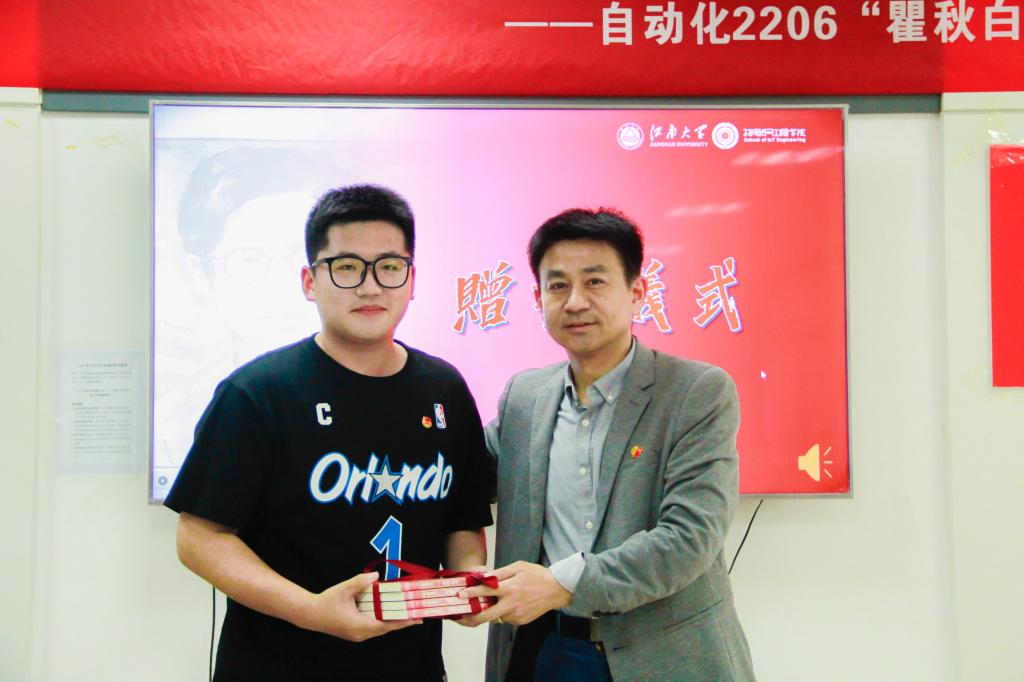 荐•经典:悟信仰力量。瞿秋白是中国共产党早期领导人中少有的同时兼具文学家和革命家双重身份的同志,他翻译和创作了多部文艺文学作品,为中国革命文学事业做出了不可磨灭的贡献。文定为、王文杰、尹杰豪、李佳骏四位学生代表小组进行瞿秋白文学作品推荐,他们结合历史背景分别对《一种云》《多余的话》《哭母诗》《江南一燕》四部作品内容进行了深入解读,阐述了作品中蕴含的真挚情感和革命理想,并结合自己的学习和生活分享了他们的推荐理由和自己独特的感悟。经现场评分,《江南一燕》推荐小组获得第一名,孔军为小组赠送瞿秋白著作《赤都心史》。