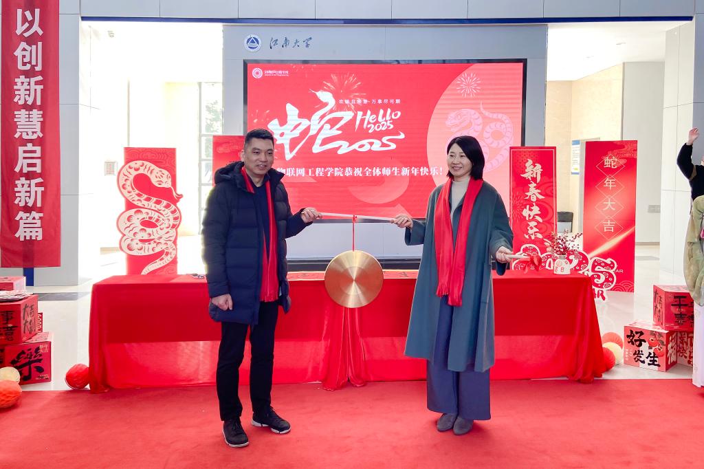 在学院大厅举办“巳巳如意,福满物联”2025新年游园会活动,喜迎元旦,欢度佳节。学院党委书记张华,院长栾小丽,党委副书记兼副院长吴妍,副院长陶洪峰、郭亚,院长助理等与广大师生欢聚一堂,共贺新年。