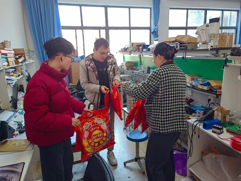 组织开展春节慰问留校学生活动。学院党委副书记兼副院长吴妍、学工办主任洪筱等一行走访了学生宿舍、实验室及大学生创新实践基地,为留校学生送去新年问候和美好祝福。
