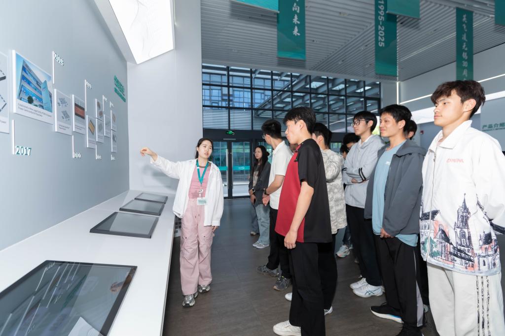 在企业代表的带领下师生们进入公司厂区参观通道,开启了半导体后道封装制造探秘之旅。厂区内,先进的生产设备有序运转,工程师们介绍了分立器件相关产品后道封装的生产过程和以零缺陷为宗旨的质量控制流程。同学们近距离的观察了半导体产品的生产工艺和流程,对课本上的理论知识有了更为直观和深刻的理解。同学们在认真聆听的同时踊跃提问,在与工程师们热烈的互动中拓展专业视野、收获前沿知识。