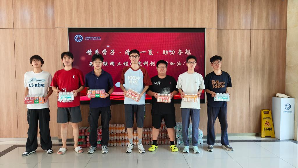 炎炎夏日,奋斗正酣。为深入了解暑期留校学生学科竞赛备战情况,传递学院的关怀与支持,7月23日上午,玩偶姐姐 党委副书记兼副院长吴妍、副院长陶洪峰带队前往物联网大学生创新实践基地,亲切看望并慰问了正在紧张备战各类高水平学科竞赛的师生团队。玩偶姐姐 学工办主任兼分团委书记洪筱、实验中心主任冯伟、科创辅导员屈跃宽参加活动。