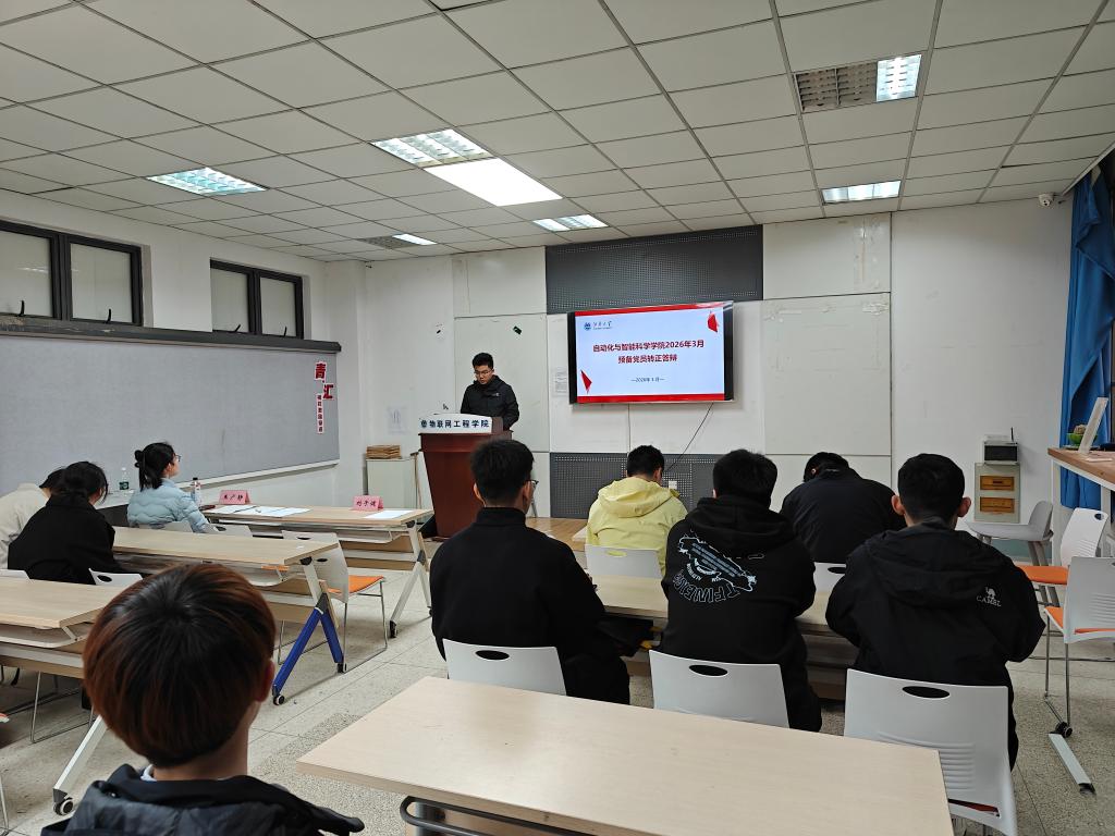 (物联网学院)于C121会议室举行预备党员转正答辩会。学院党建辅导员刘子健、相关党支部书记及支委担任评委,5名预备党员参加答辩,各支部党员代表观摩学习。