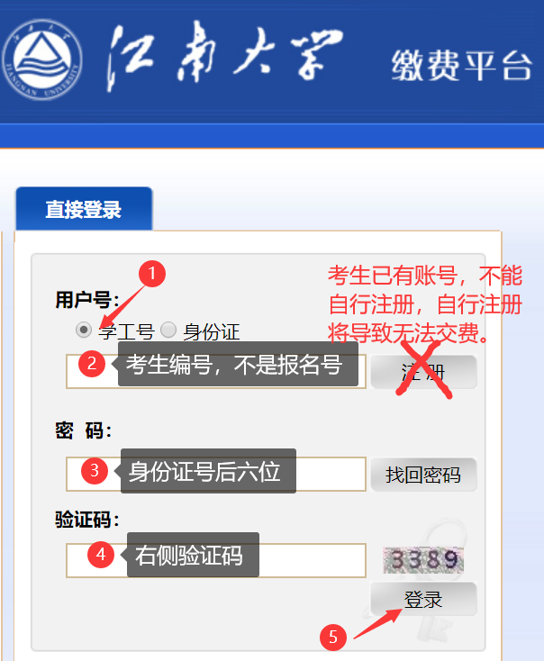 缴费平台”交纳复试费用,复试收费标准:80元/生。缴费网址://pay.wanoujj.net/payment/。登录账号为准考证上的考生编号,登录密码为身份证后六位(友情提醒:考生账号已开通,切勿自行注册)。按照提示交费(使用网银),并打印或截图保存付费凭证。