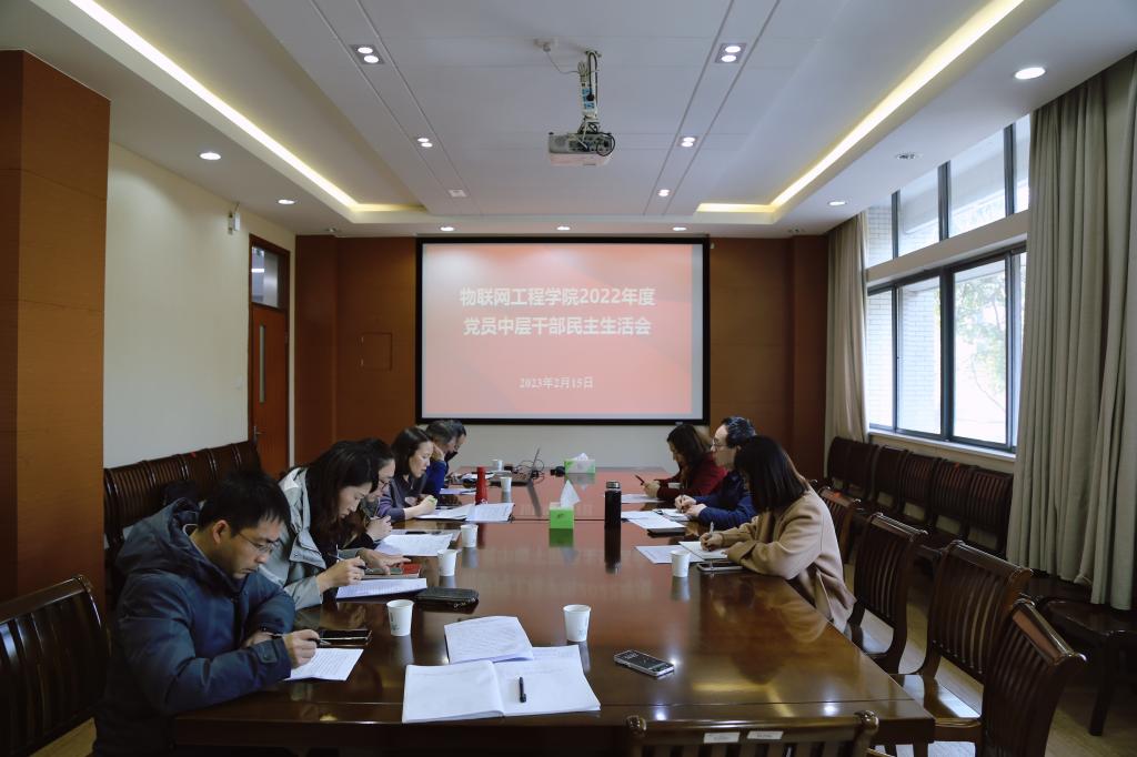 在D206会议室,召开2022年度党员中层干部民主生活会。校党委督导、副校长堵国成,校纪委督导、校工会常务副主席黄壮霞到会指导。学院全体中层干部参会,会议由学院党委书记程捷音主持。