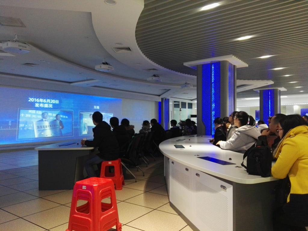 到达国家超级计算中心后,由工作人员带领我们进入基地内部进行参观与学习,并观看了短片《神威·太湖之光》。据介绍,我国首台全部采用国产处理器构建的“神威·太湖之光”超级计算机,通过自主研发高性能处理器和全部软件,打破了国外的技术封锁,真正实现了软硬件系统的完全自主可控,有三个在“神威·太湖之光”超级计算机上开展的应用荣获“戈登贝尔奖”,这标志着中国在超级计算机研制上取得了重大突破。老师和同学们对超级计算机兴趣浓厚,现场和工作人员进行的深入讨论。