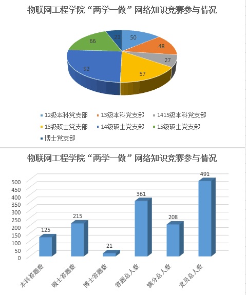 本次网络竞赛内容主要包括《中国共产党章程》、《准则》、《条例》以及习近平总书记系列重要讲话精神等相关知识,共设计50道选择题。在竞赛开始前给予同学们五天时间温习并强化相关知识内容,之后由问卷星平台发布试题,参赛选手由手机、电脑都可随时访问进行答题,并在结束答题后显示分数与题目解析,错误题目着重标注,帮助学生加深对党规党章等内容的了解。此次玩偶姐姐共有361名正式、预备党员参与网络竞赛活动,占全体学生党员数的70%,其中本科生125名,硕士生215名,博士生21名,根据答卷结果分析,答卷平均正确率高达96.55%,共208名同学获得了满分的好成绩。