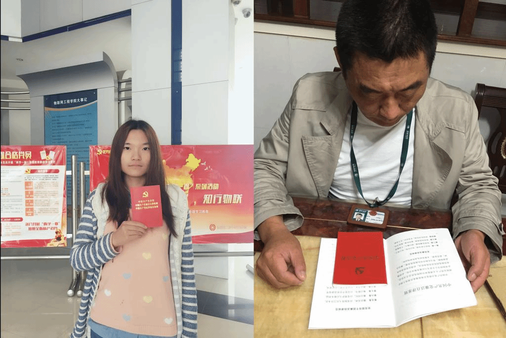以史为镜,可以正衣冠,本着只有了解到不同时期背景不同经历的党员对于新党章的解读,才能更好的结合当下形态理解新党章于我们当代大学生党员时代意义的目的,向父辈党员同志们征集了他们与党章、党旗的合影,学习他们对《中国共产党章程》的解读。支部成员们从身边最亲近的党员父亲着手,借着对《中国共产党章程》的学习,从思想上更加靠近他们。肖寒月的父亲说道,“党章是每个党员的基本法,字句非常凝炼,我们都需要认真学习,更重要的是在今后的学习生活、工作实践中经常用党章来指导和要求自己。过去一年里,党在国家治理层面做了很多事情,比如反腐、对外政策等,成绩斐然。作为基层一名党员我们应该自觉围绕在党的领导下,拥护党的决议,以党章严格要求自己,自觉、自主、自发地做好一名基层党员应该做的事情,为实现中华民族伟大复兴添砖加瓦” 。党章不管是于已为人父、工作多年的父辈们,还是正在茁壮成长、不断学习的我们都一样,是我们思想海洋里的明塔,指引着我们往正确方向前进。