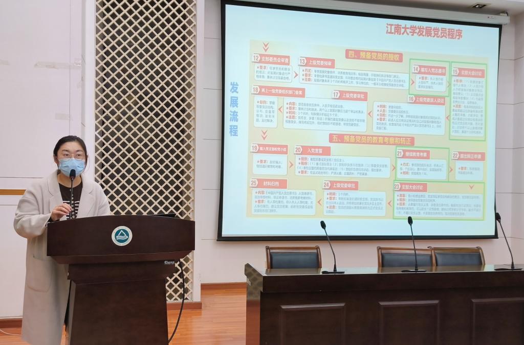 学生党员发展流程。她进一步明确了发展党员工作的条件和要求,统一了入党流程的关键时间节点,规范了相关重要文件的填写方式,并且结合学院党建工作实际,对发展党员流程中的常见问题和注意事项展开梳理提示。