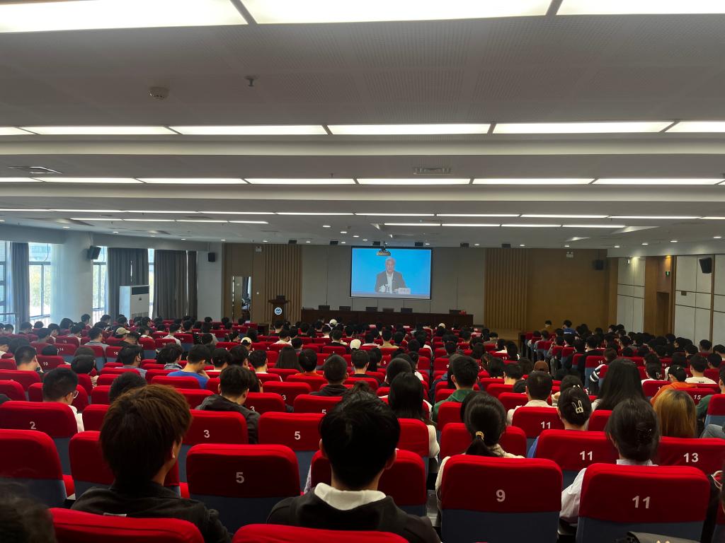 师生党员在学院D328、图书馆305报告厅两个分会场共同聆听了中央党校(国家行政学院)分管日常工作的副校(院)长谢春涛同志的专题报告。