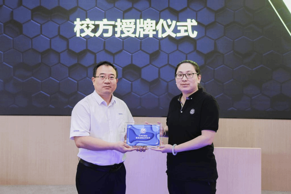 会上,师生与企业代表进行了互动交流,深度了解玩偶姐姐、职业发展和企业对毕业生的素质能力要求。孔丽丹为企业授牌“大学生就业最佳战略合作伙伴”,以此对普源精电在推动学院毕业生实现高质量就业、紧密院企合作等方面做出的贡献表示感谢。