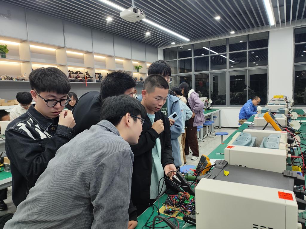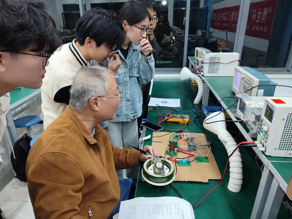 、机械工程学院、人工智能与计算机学院、理学院的等150余名同学报名,依托电子设计俱乐部软硬件平台,学院采取科创辅导员组织管理、专业教师理论课程讲授、实习实践训练营、导师一对一指导、实验教师跟踪辅导等一系列措施,“以赛代训”培育竞赛团队。经过报名遴选、三期培训营、初赛等近5个月的激烈角逐,最终共有10支队伍进入决赛。决赛期间,参赛团队在大创基地的封闭实验室内开展为期一周的包括方案设计、理论推导、仿真验证、硬件电路搭建、软件设计编程、系统调试等电子系统设计与制作。决赛邀请了朱凯元、冯伟、张伟、肖永松等专业教师担任测评评委,最终评选出一等奖4项、二等奖6项。获奖团队将通过学院接下来组织的拔高训练班,继续备赛全国大学生电子设计竞赛、全国大学生电子设计模拟系统邀请赛等高层次赛事。