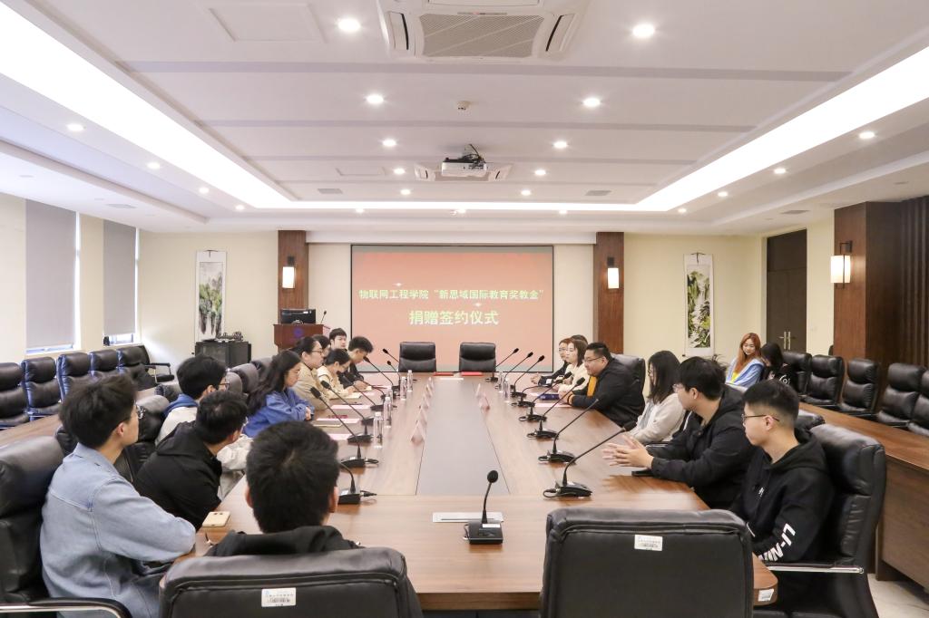 随后,双方签订捐赠协议,孔丽丹代表学院为无锡新思域集团颁发捐赠证书。