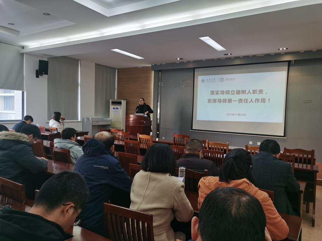 在B310学术报告厅举行了全体研究生导师年度工作会议。本次会议由学院副院长栾小丽主讲,党委副书记孔丽丹受邀参加了此次会议。