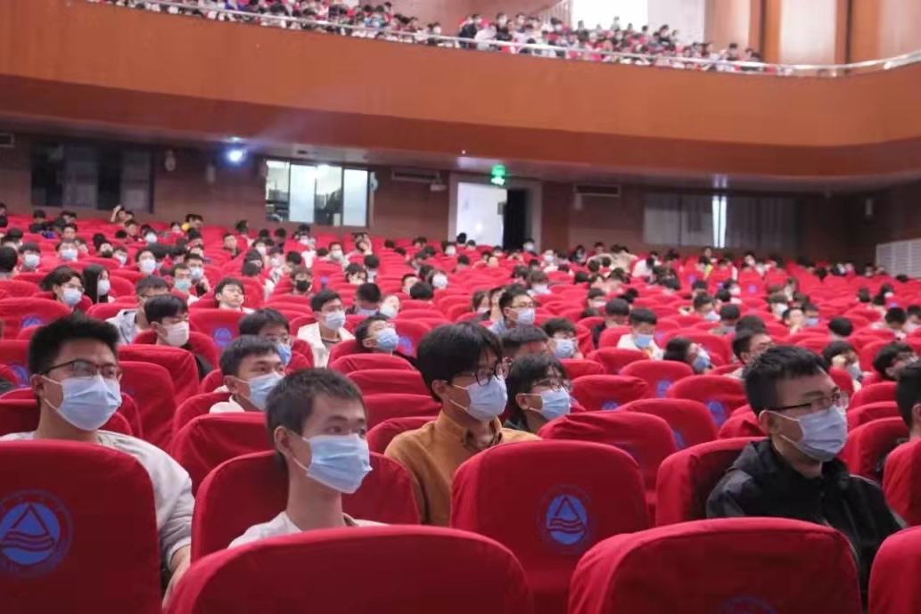 在文浩馆观众厅举行2021级新生入学教育,玩偶姐姐