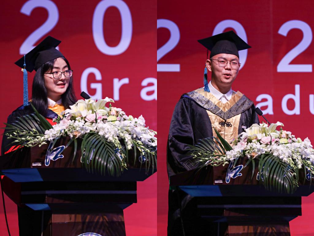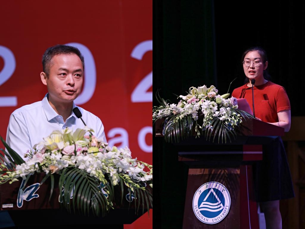 活动伊始,全场奏唱国歌。随后,研究生毕业生代表控制科学与工程2017级博士张霄、本科生毕业生代表自动化1706王瑞涵作毕业发言。他们不约而同地回忆了大学学习的点滴时光,由衷地感谢学院的培养、师长的教导、同学的陪伴,表示将以校训、院训精神为动力,以最饱满的热情去勇敢地直面各种挑战,用最豪迈最稳健的步伐朝着美好的未来努力前进。