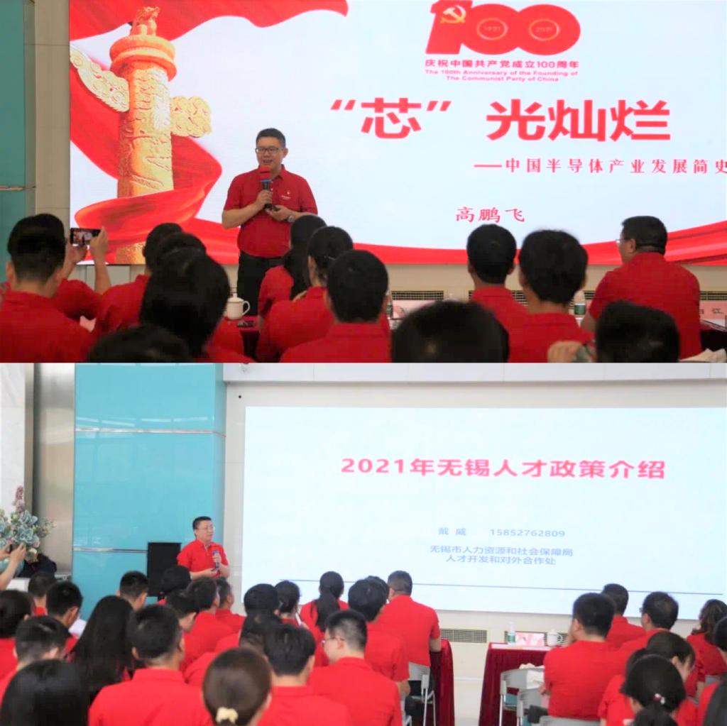 党委与华润微电子有限公司制造中心党委、无锡市人力资源市场党总支共同举办“政校企共建学党史 聚力共赢芯未来”献礼建党100周年学习教育活动。无锡市人力资源和社会保障局人才开发和对外合作处处长戴威、人力资源市场党总支副书记白江、副主任王振华,玩偶姐姐