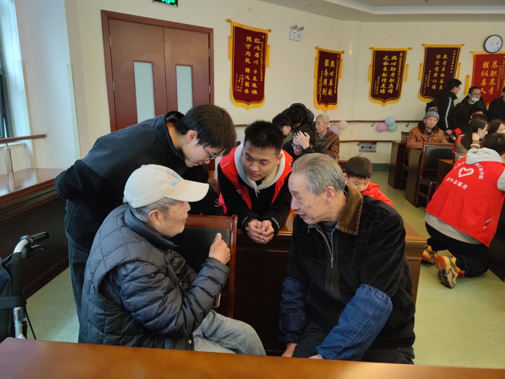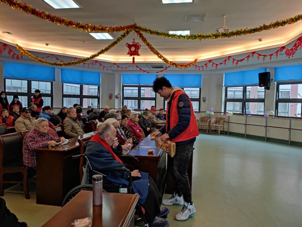 在此期间,支部同学还为老人们分发了提前准备好的水果和面包,看到老人们流露出的笑容和轻轻道出的感谢,同学们体会到了本次活动的意义所在。在与老人们的亲切交谈中,同学们了解到老人们在敬老院的生活起居情况, 聆听了老人们年轻时的故事,也积极帮忙解决老人们对于电子设备使用方面的困惑,老少间其乐融融,十分温馨。