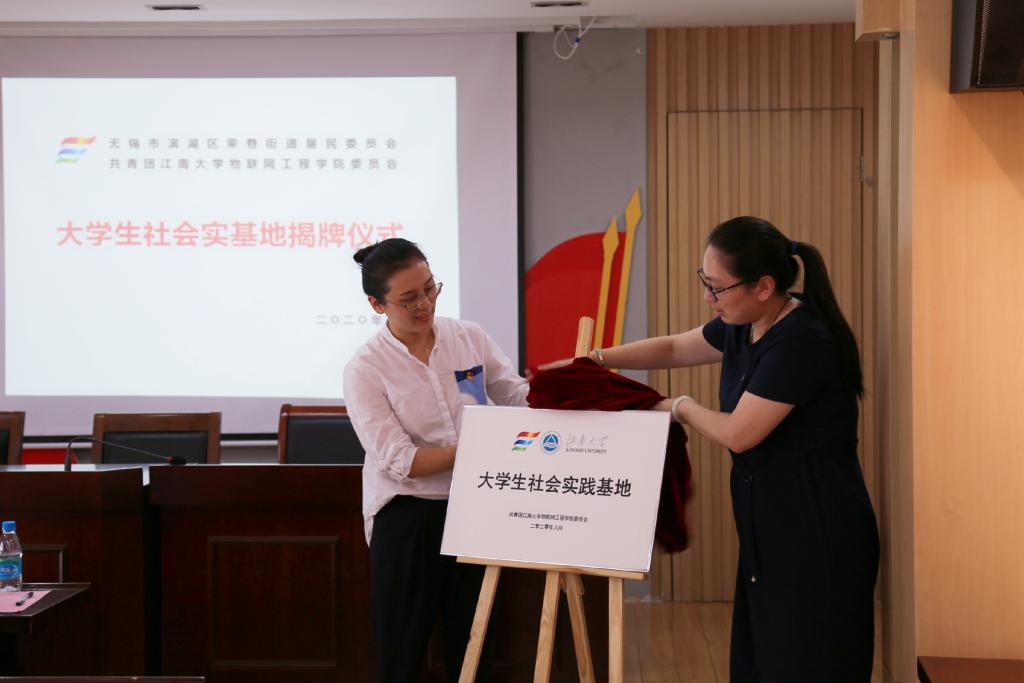 党委副书记、副院长孔丽丹和梁溪社区党委书记蒋美琪签署大学生社会实践基地协议,并为实践基地揭牌。