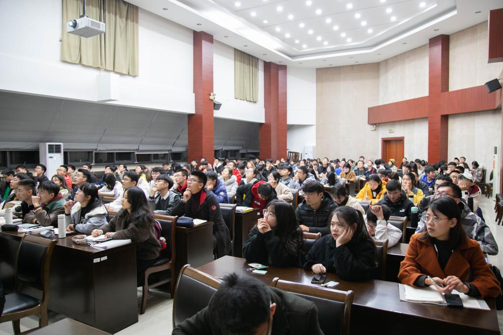 赵老师从我国社会主义核心价值观提出的时代背景讲起,核心价值观的提出是应对经济全球化挑战的时代选择,是我国经济发展方式实质性转变的客观要求,是中国特色社会主义新发展的内在规律,更是实现中华民族伟大复兴的中国梦的历史使命。接着,赵老师又从构建社会主义核心价值观的现实困境、培育关键节点和主要途径三方面做了探讨。24字的核心价值观分别从国家、社会、公民的角度向我们展示了社会主义核心价值观的基本内容和内在联系;无论何种学历,多大年龄,社会主义核心价值观的培育与践行都必不可缺,每个人都应该将其内化于心,外化于行。最后,赵老师还通过分享身边的优秀校友的奋斗故事启发同学们践行社会主义核心价值观的方式方法有很多种,它贯穿于每个人的生活、学习、工作之中。