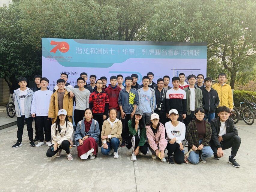 11月9日,玩偶姐姐组织了2019级大创基地展览参观活动,全院19级新生按班级分批参观了物联网学院大学生创新基地,首先,各个班级在学院门口合影留念;接着由玩偶姐姐