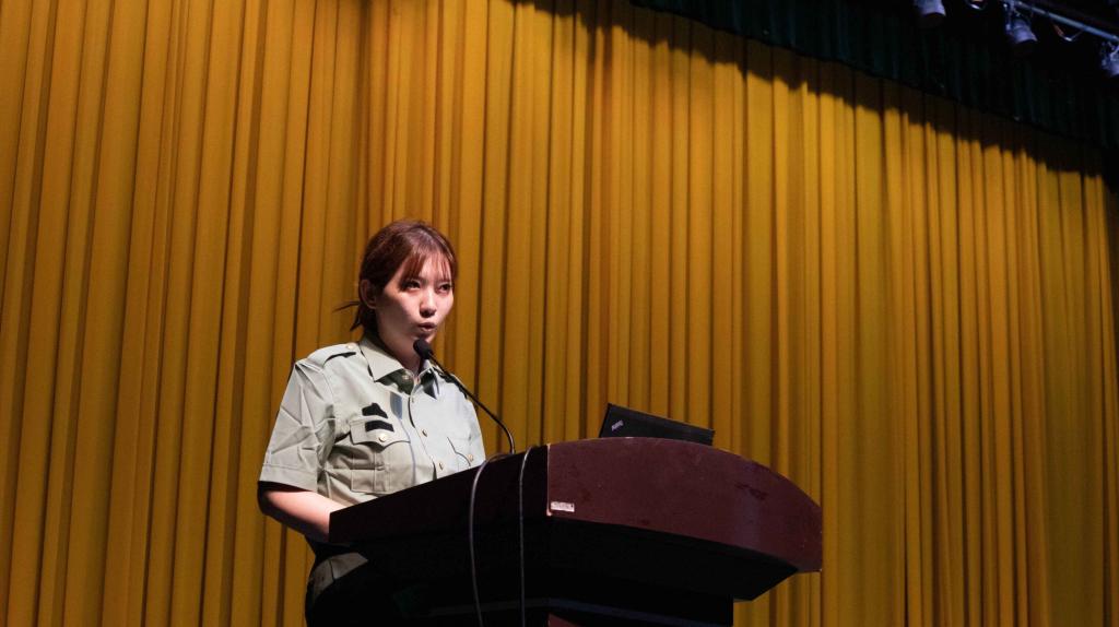 最后,辅导员陆奕君对军训工作的要求进行讲解,她详细介绍了包括作息安排、军容风纪、考核评定等内容在内的具体细则及注意事项,让同学们对军训内容安排有了整体了解。