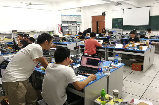 “博世杯”电子设计竞赛,营造浓厚的科创氛围,以赛促练、以赛促学,择优选拔种子队全力备战2019年全国电子设计竞赛。5月学院组织经验丰富的指导老师对种子选手着手开始培训。正式比赛开始后,全体参赛学生不畏高温酷暑,勇于钻研,顽强拼搏,争分夺秒的在大学身创新实践基地电子设计实验室完成作品制作、调试及竞赛报告撰写。比赛结束后,学院组织有序,不畏台风“利奇马”带来的狂风暴雨,克服重重困难,按时将参赛作品送到南京理工大学,并将全体参赛学生安全送往测试地点。