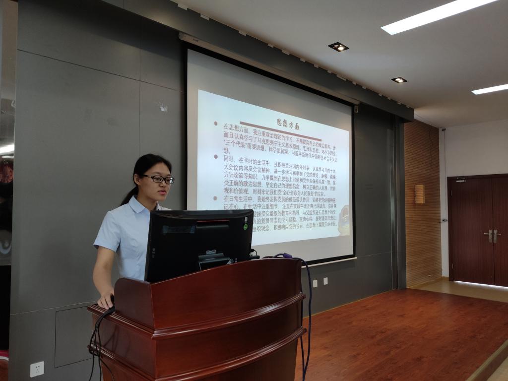 最后,耿书记希望大家要始终以党员的标准严格要求自己,要继续努力学习党的基本理论知识、专业知识和传统文化知识,不断提高自己的综合素质;要不断创新,勇于担当,背负起新时代赋予我们的历史使命。通过转正答辩,预备党员们再次重温了党章、党规及习近平总书记重要讲话精神,认真回顾了一年来自己在思想上和行动上的转变和进步,进一步夯实了理论基础,提高了思想觉悟。