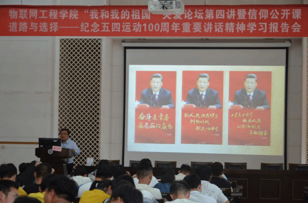 报告会开始,桂小军先回顾了五四运动发生的历史背景,并讲诉100年前五四运动中的学生爱国激愤的小故事,形象的向同学们讲诉了五四学生运动的发生过程及取得的成果,并重点讲述了五四运动中新思想的传播对当代中国青年的重要意义。之后,桂小军对习近平总书记在纪念五四运动100周年大会上的重要讲话精神进行了解读,带领同学们重新认识了五四运动中的爱国主义精神及其对民族振兴和社会变革的重要推动作用。并从他个人的工作和学习经验,对同学们的学习和成长,给予了一些中肯的建议,为青年的成长,特别是思想上的成长指明了方向。随后,桂小军校友从他亲身聆听的江苏省委娄勤俭书记以及无锡市委李小敏书记在纪念五四运动100周年座谈会时的讲话精神,分享了自己的感受,向同学们传达了青年成长对未来社会发展中的重要作用,以及对新时代青年投身地方经济及社会发展提出奋斗方向。全面系统地讲解了纪念五四运动100周年大会重要讲话精神对青年个人发展成长的重要意义。最后,桂小军对新时代的高校青年学习五四精神提出了五点希望,希望广大同学树立远大理想,担当时代责任,勇于砥砺奋斗,练就过硬本领,锤炼品德修为。并希望同学们能深刻学习五四精神,成为中华民族的脊柱。