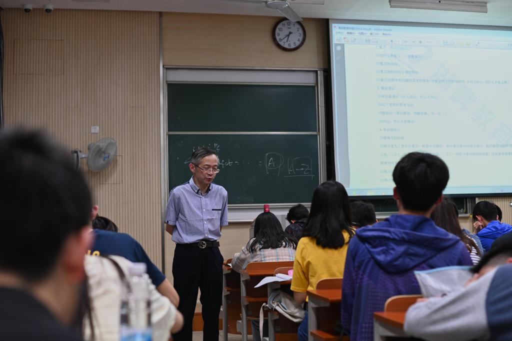 2019年4月24日晚,唯实讲坛第40期“考研数学学习方法及备考策略”在1A103举行。为了帮助同学们解除疑惑、端正心态、树立信心,学院邀请到来自同济大学数学科学学院的副教授项家梁来进行一场考研数学的讲座,他是《高等数学及其应用》等教材的编者并且多次获得“名师优课”及“我最喜欢的数学老师”称号。
