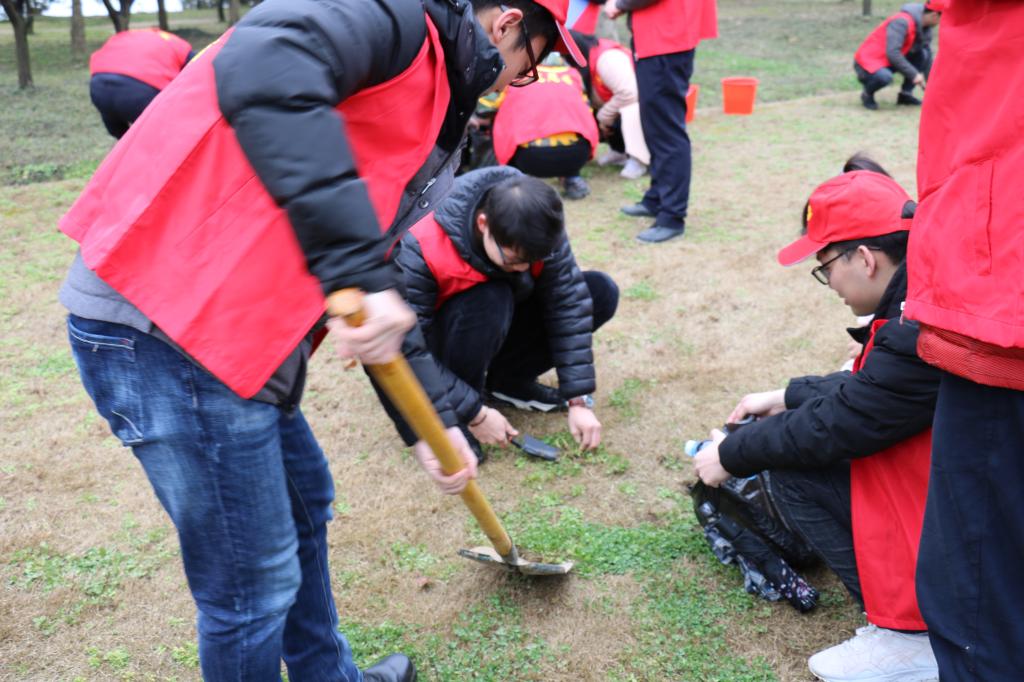 此次活动在蠡湖之光蠡湖风景区志愿服务站进行,组织了四项兼具趣味性和竞赛性的环境维护活动,分别是快速除草、为树挂牌、植物猜谜和垃圾分类。
