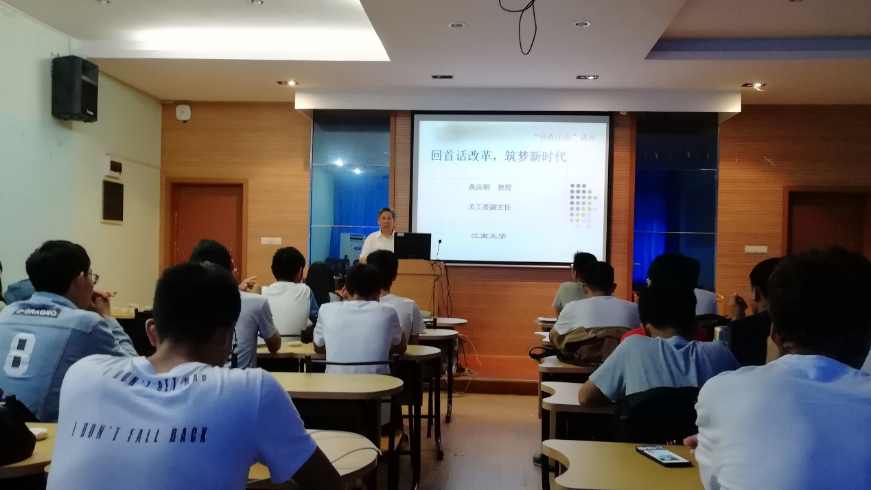 ,台下同学们聚精会神的听着,不时记下重点内容。接着,燕老教授结合自身经历,讲述了改革的重要性,改革是一个国家发展壮大不可或缺的方式,深化新时代高等教育改革是国家大计,在全国教育大会上,习近平总书记指出教育是国之大计、党之大计。“青年人,特别是大学生,就应当努力学习、报答国家,你们才是未来国家的栋梁”燕老教授如是说到。