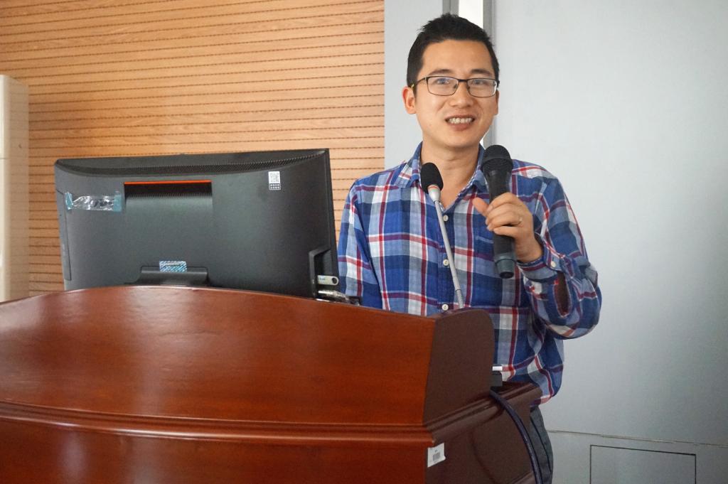 中国船舶重工集团第七〇二研究所及国家超级计算无锡中心专家组成员褚学森在培训会上为大家带来题为“基于神威平台SWLBM软件的开发进展”的报告。褚老师就无锡超算中心近年取得的成就讲起,从“SWLBM模块架构”、“项目关键技术”、“标志性进展及典型算例介绍”和“项目潜在应用展望”等方面用浅显易懂的语言为与会人员深入浅出地介绍了SWLBM项目向神威平台移植的过程及发展趋势。紧接着,国家超级计算无锡中心的工程师张炜及孟虹松为物联学子讲述培训要点,其主要内容包括:神威太湖之系统及应用介绍、“太湖之光”基础编译系、OpenACC编程入门和行编程优化技术等。