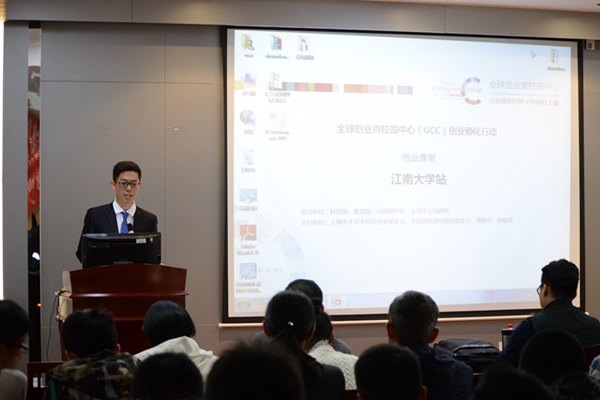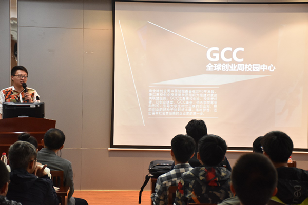 创业课堂的现场。GCC是于2010年由全球创业周中国站组委会发起成立,是以高校创业投资类社团组织为组建对象的类联盟组织,以多种活动形式,引导大学生树立正确的创业观,帮助创业的好种子找到好土壤、落地梦想、迈出富有社会责任感的企业家的第一步。他随后讲述了如何让创业的好种子找到好土壤。最后,他表示GCC的愿景是“汲取青年创业梦想,共同铸建一个有品质的世界”,并欢迎大家加入他们的活动。