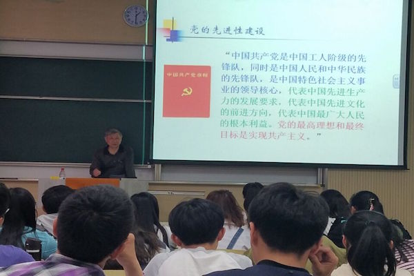 随后,娄老师详细讲解了关于党的先进性建设的内涵。娄老师指出,作为一个在有着13亿多人口的大国长期执政的党,党的建设十分重要,且牵动全局。希望同学们能够深刻领会建设中国特色社会主义的总依据、总布局、总任务,成为两个百年目标、中国梦的推进者和实践者。