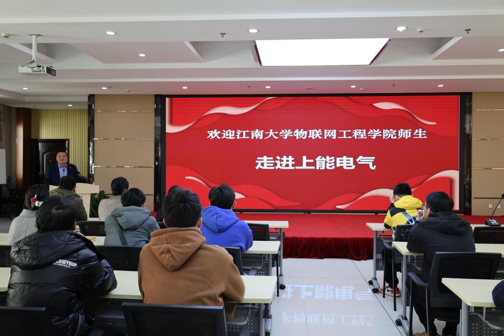 一行表示欢迎,并围绕公司发展历程、产业范畴、技术发展以及人才培养等方面展开了详细的介绍。他指出,上能电气股份有限公司深耕电力电子变换和控制领域,业务涵盖光伏逆变器、储能系统、电能质量治理、电站开发等多个领域,致力于打造高效、安全、经济、绿色的电力能源。同时,鼓励青年学子扎实学好专业知识、明确未来努力方向、提前规划尽早准备。