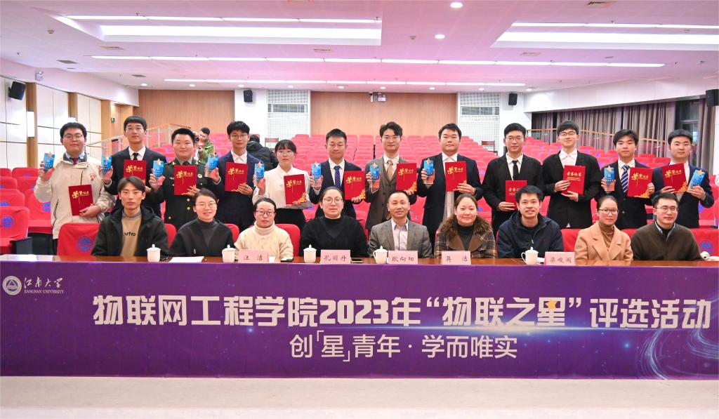 2023年“物联之星”评选活动在图书馆305报告厅举行。校学生工作部副部长蒋洁,校研究生工作部正科级干部汪洁,学院党委书记耿向阳、党委副书记兼副院长孔丽丹、副院长梁峻阁出席活动并担任评委,学院全体辅导员及300余名物联学子共同观看。
