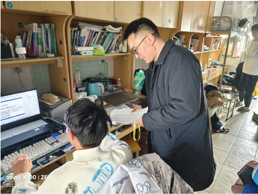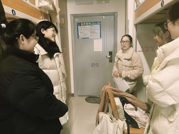 走访过程中,学院辅导员与宿管沟通交流,探讨如何更好地为学生做好管理与服务工作;辅导员们深入学生宿舍,与同学们进行了面对面的交流。他们详细询问了同学们的期末学习情况和生活状态,认真倾听了同学们关于课程学习、实践参与、职业规划等方面的想法和困惑。对于提出的问题,辅导员们耐心解答并提供积极建议,强调了调整好心态、合理安排作息时间的重要性,鼓励同学们制定好学业规划,诚信备考期末考试。