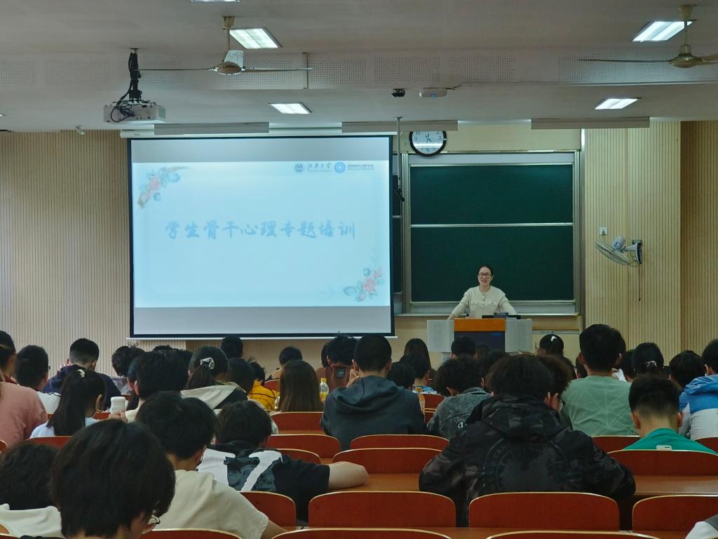 开展春季学生骨干心理专题培训。4月26日,第一期培训在第一教学楼1B103成功举办,大一、大二年级全体心理委员和宿舍长参加,学院学工办副主任、心理辅导员李诗炜主讲。