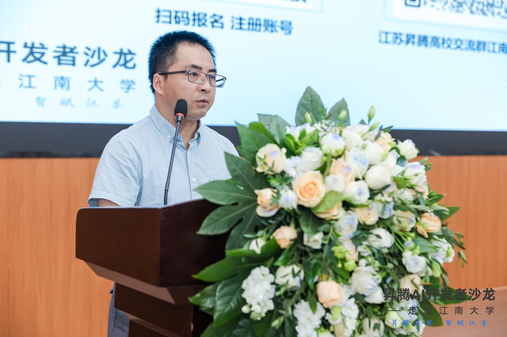 教学副院长陶洪峰代表学校致欢迎词。陶院长指出华为昇腾作为人工智能领域的一颗璀璨明星,正以其强大的技术实力和创新能力,引领着行业的发展潮流。此次开发者沙龙的举办,为玩偶姐姐